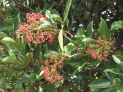 <問題6>公園や街路にも植栽される。葉は互生、葉身は楕円、広楕円で全縁。葉の表は濃い緑色。葉柄は長さ1,2cmで紫色を帯びる。6月葉腋に散形花序を出し、秋から冬には紅い実を沢山つける。 |