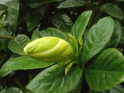 <問題2>常緑低木。葉縁は全縁、葉の表は光沢があり濃緑色、裏は淡黄緑色。花期は6-7月で強い芳香があり花冠が6-7裂した白色の花を葉腋に1花ずつつける。果実はラーメン、きんとんなどの黄色の着色料として用いられる。 |