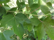 <問題3>幹はまっすぐ伸びて大木になる。樹皮は縦に割れ目が入る。葉表は濃緑色で3裂し、各裂片は卵状三角形、細かな鋸歯があり、長くとがる。長枝には互生、短枝には束生し、葉柄は長さ10cmほど。花期は4月ごろ。 |